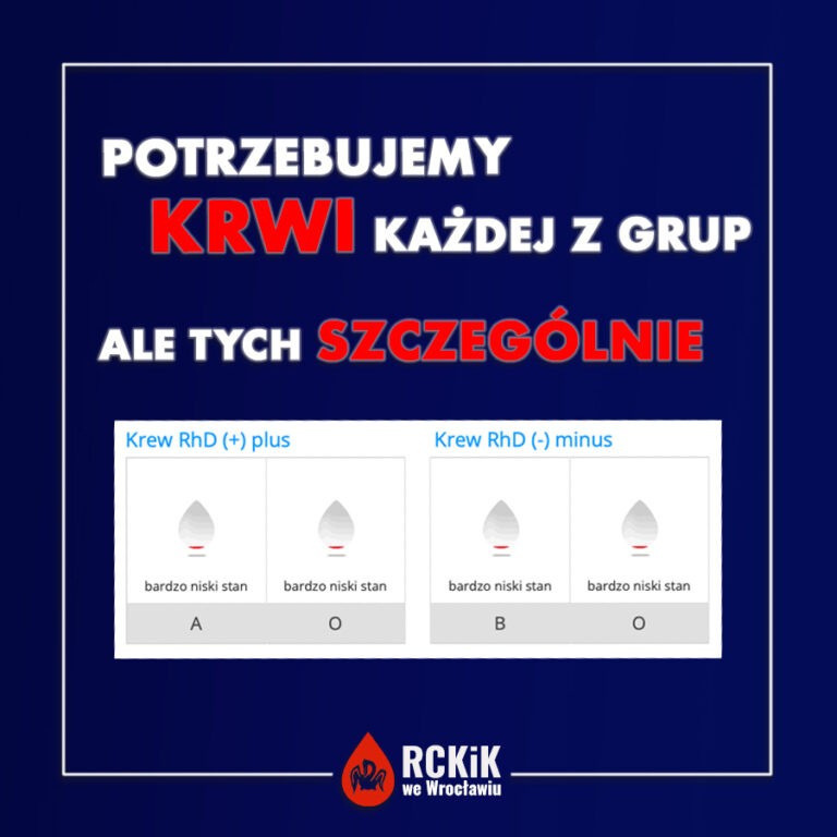 Regionalne Centrum Krwiodawstwa i Krwiolecznictwa im. prof. dr hab. Tadeusza Dorobisza we Wrocławiu przy ul. Czerwonego Krzyża 5/9 pilnie prosi mieszkańców okolicznych miejscowości do zgłaszania się do oddawania krwi.
