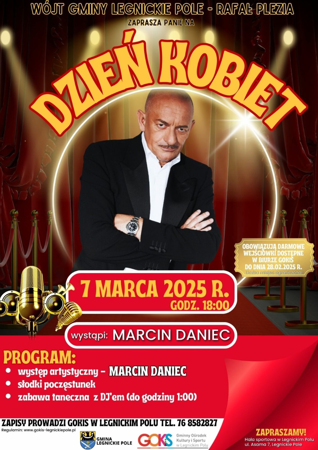 Wstęp tylko za okazaniem bezpłatnego imiennego zaproszenia, które do 28 lutego odbierzecie w biurze GOKiS w Legnickim Polu. Umawiajcie swoje przyjaciółki i śpieszcie się, ponieważ liczba miejsc jest ograniczona.