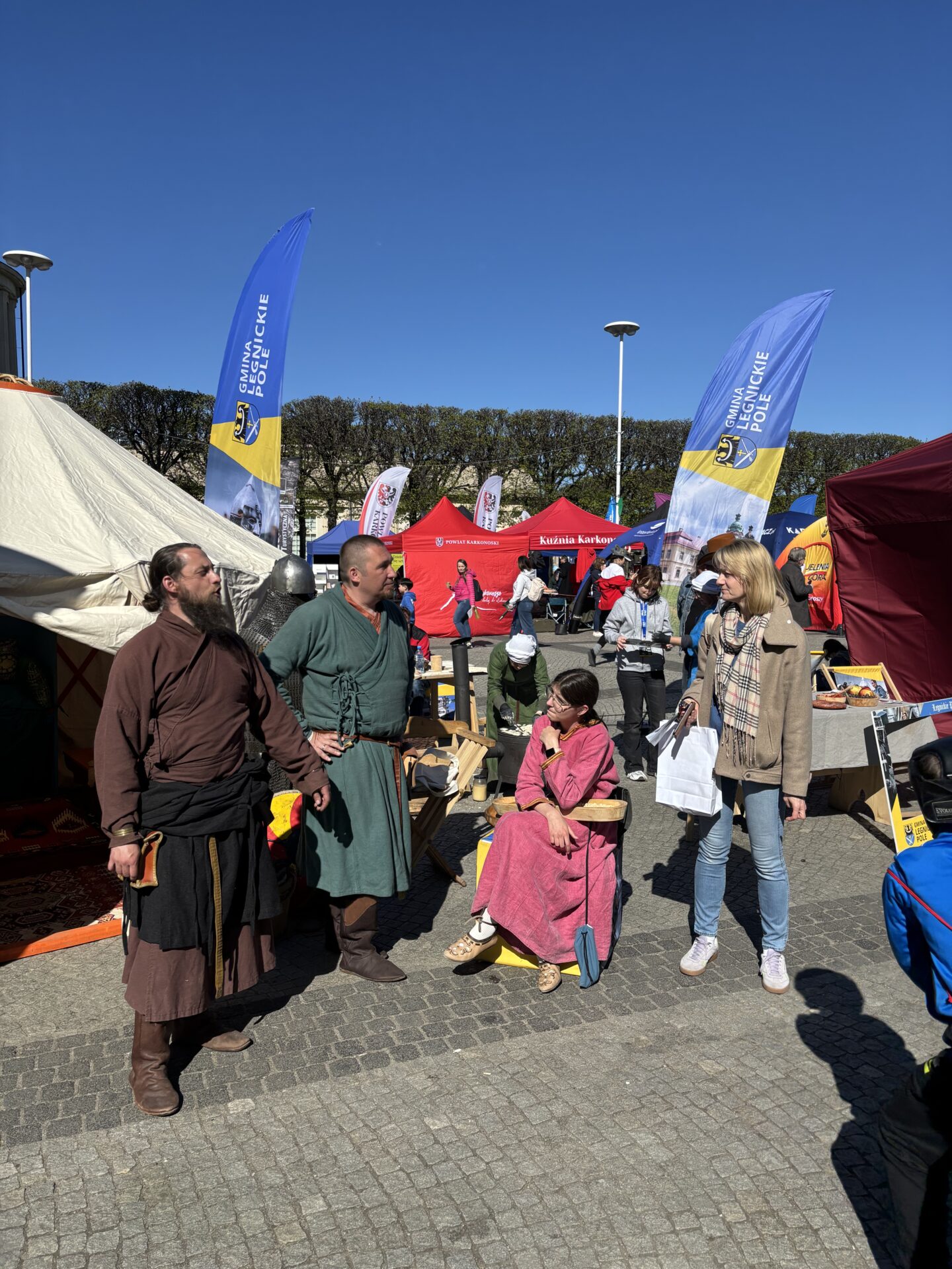 Drugi dzień przyniósł kolejne wartościowe spotkania i jeszcze więcej rozmów z mieszkańcami regionu oraz turystami. Promowaliśmy nie tylko letnie wydarzenia, ale też bogatą historię i unikalny klimat Legnickiego Pola. Szczególną uwagę zwracaliśmy na zbliżającą się rekonstrukcję Bitwy pod Legnicą z 1241 roku, która odbędzie się 5 i 6 czerwca. To jedno z najbardziej widowiskowych wydarzeń historycznych w regionie, przyciągające co roku wielu pasjonatów historii.