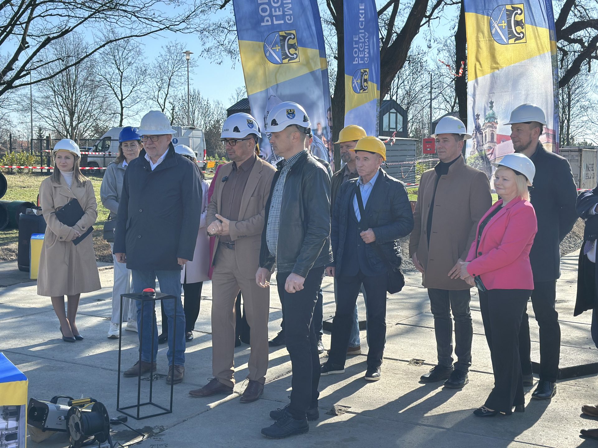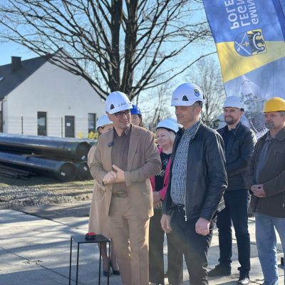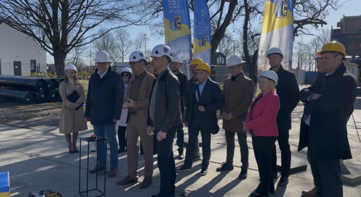 Prace wykonuje firma ALGEO Sp. z o.o. Podczas dzisiejszej inauguracji obecni byli Rafał Plezia Wójt Gminy Legnickie Pole, prezes spółki Zbigniew Deręgowski, inżynier kontraktu Bogdan Noga, geolog projektu Krzysztof Jańczak, radni gminy na czele z przewodniczącym Krzysztofem Lelito oraz dyrektor GOKiS w Legnickim Polu Agnieszka Markiewicz.